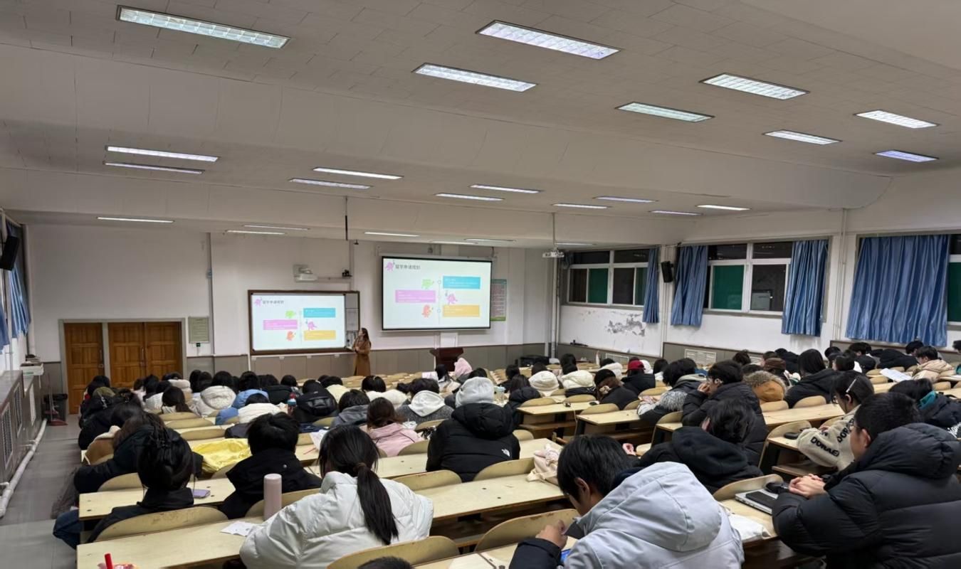 在热烈的氛围中,程思琪围绕留学申请规划、注意事项以及海外学习生活三个方面展开分享。关于留学规划,她建议同学们尽早明确目标院校与专业,深入研究申请要求,提前做好背景提升;在申请准备方面,她提醒大家合理规划语言考试时间,注重申请材料的完整性与规范性,并及时了解签证政策与留学费用,做到未雨绸缪。谈及海外生活,程思琪结合自身经历,讲述了初到布里斯托时在语言与文化方面遇到的挑战,鼓励同学们在专注学业、培养独立思考能力的同时,主动融入当地环境,积极适应异国生活节奏。
