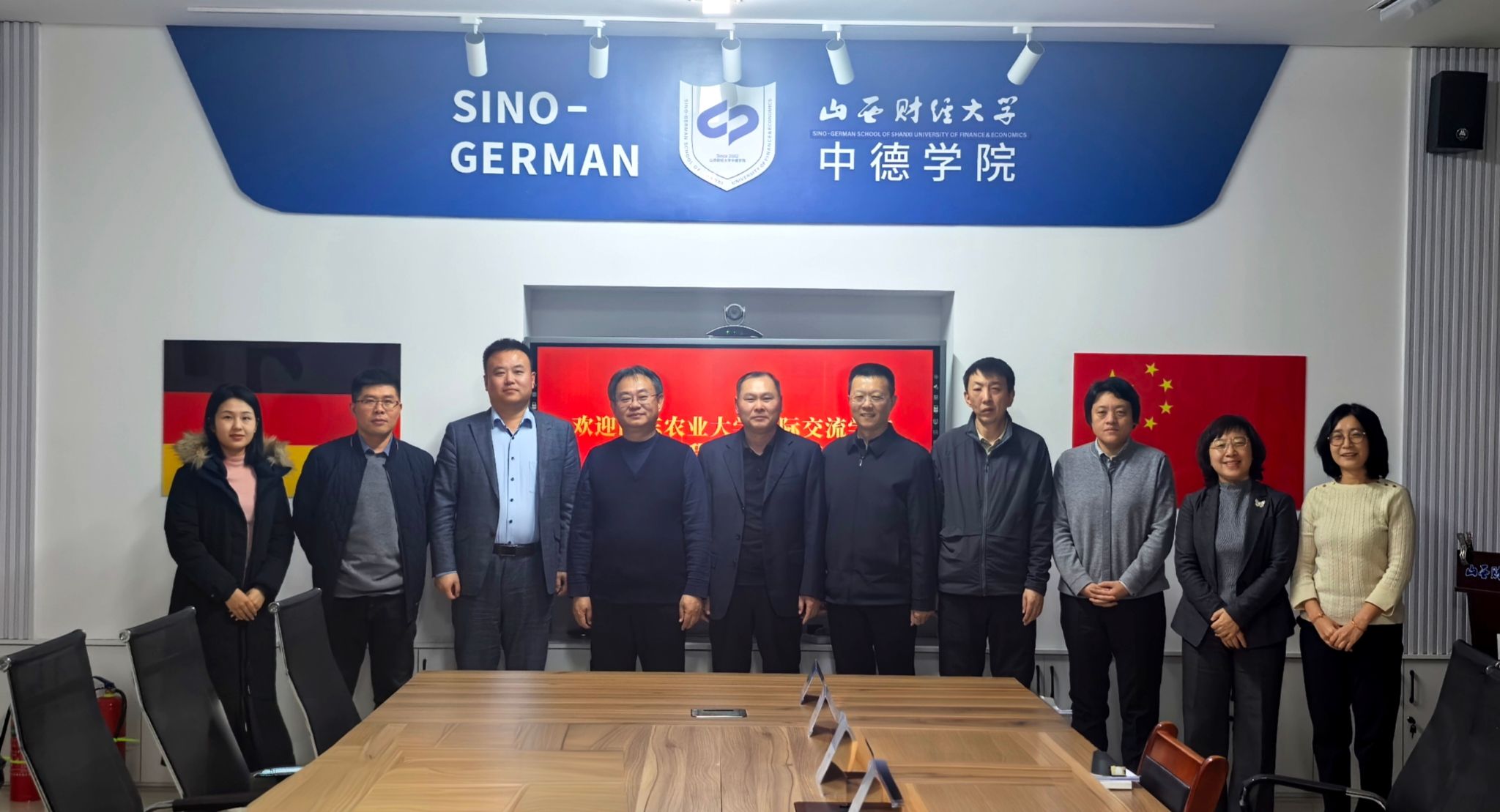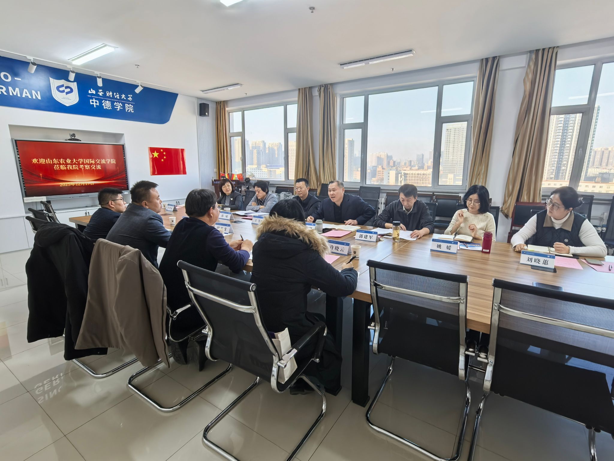 12月17日下午,山东农业大学国际交流学院副院长张吉国、邱若龙等一行到访山西财经大学中德学院,围绕中外合作办学开展调研交流。中德学院党委书记刘臣洲,党委副书记、院长王书华,副书记郭建军,副院长陈啸、王秀娟及相关负责同志参加交流活动。