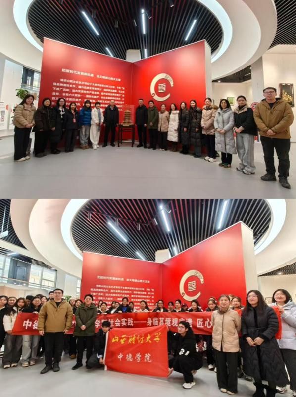 1月15日,中德学院党委书记刘臣洲、党委副书记、院长王书华、副院长陈啸带领70余名师生前往锦绣山西文化艺术馆,开展2026年度“小学期”社会实践活动。本次活动以“身临其境观非遗、匠心独运促传承”为主题,旨在通过沉浸式体验,让学生真切感受山西非物质文化遗产的深厚底蕴与独特魅力。