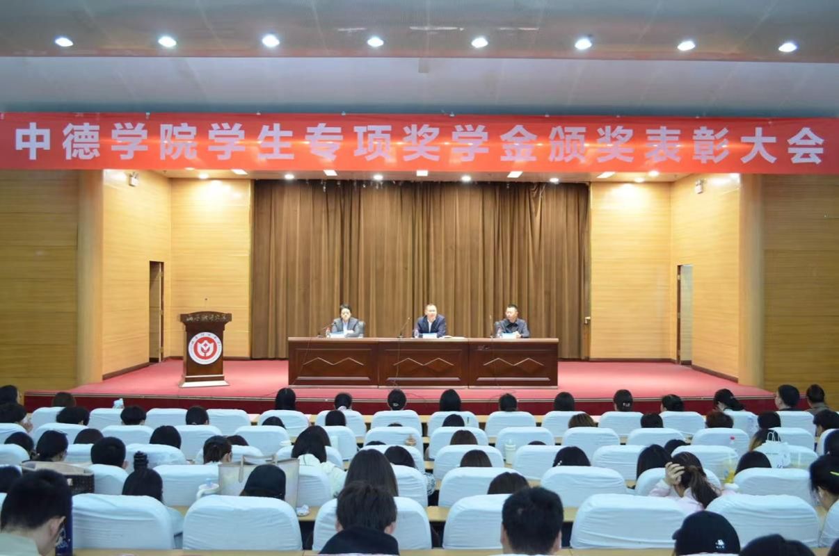 为表彰先进、树立榜样,激励全院学生勤学笃行、奋勇争先,2026年4月21日下午,中德学院学生专项奖学金颁奖表彰大会在立信报告厅隆重举行。学院党委书记刘臣洲、院长王书华、副院长陈啸出席大会,教师代表、辅导员、全体获奖学生及学生代表共同参会。大会由副院长陈啸主持。
