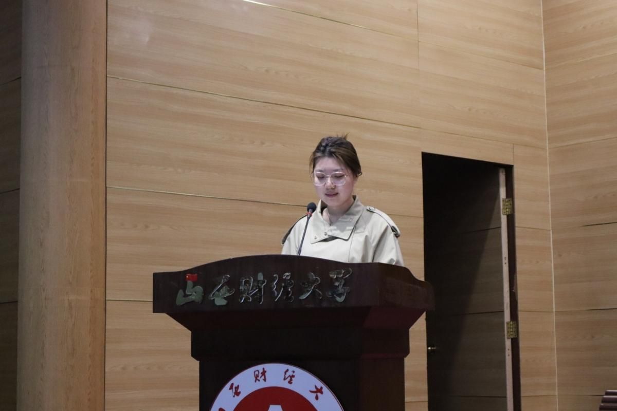 2023中德会计学班郭嘉文同学作为获奖学生代表发言。她结合自身成长历程,分享了在专业深耕、语言精进与跨文化实践中的收获与感悟,讲述了从初入校园的懵懂迷茫到目标坚定、逐光而行的蜕变之路。她表示,将以此次表彰为新起点,把荣誉化为动力、把鼓励转为担当,以更饱满的热情、更务实的作风投入学习与实践,不负学院培养、不负师长嘱托、不负青春韶华。