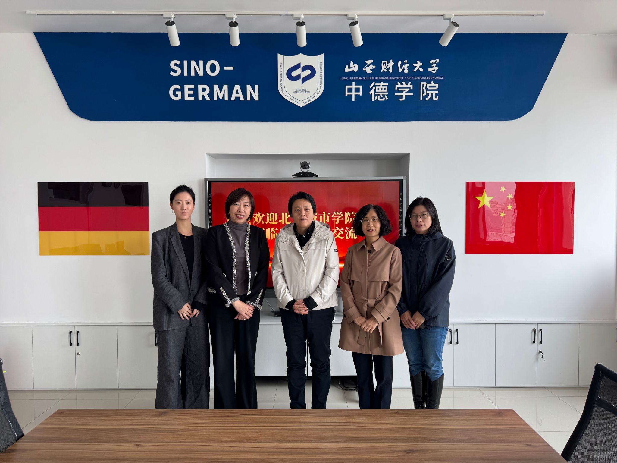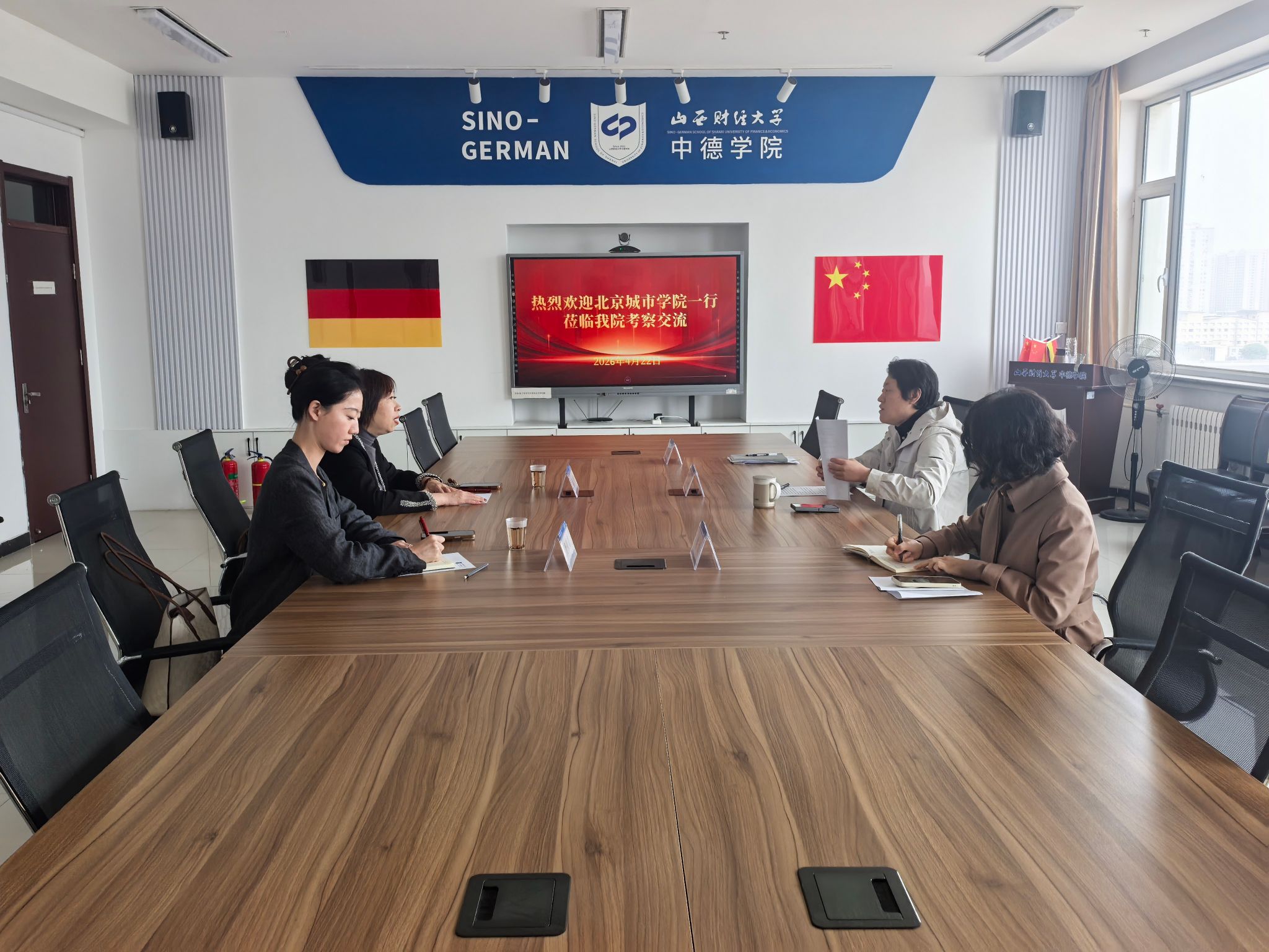 4月22日上午,北京城市学院张心远主任、龚秋童助理一行到访山西财经大学中德学院,围绕中外合作办学开展调研交流。中德学院副院长陈啸、分团委书记姚媛等参加了交流活动。双方分享办学经验,共话合作发展新机遇。